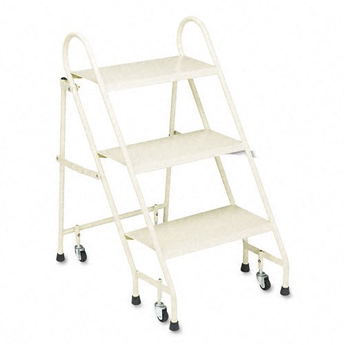 Cramer Products - Cramer - Steel Folding Three-Step Ladder w / retractable wheels, beige - Sold as 1 each - folds for easy transport and storage. - For safety, 2 "step is a comfortable 18 x 8 .. wheels retract when weight is applied - - Robust 16-gauge steel, top step is 27" high. -. Non-slip rubber feet
